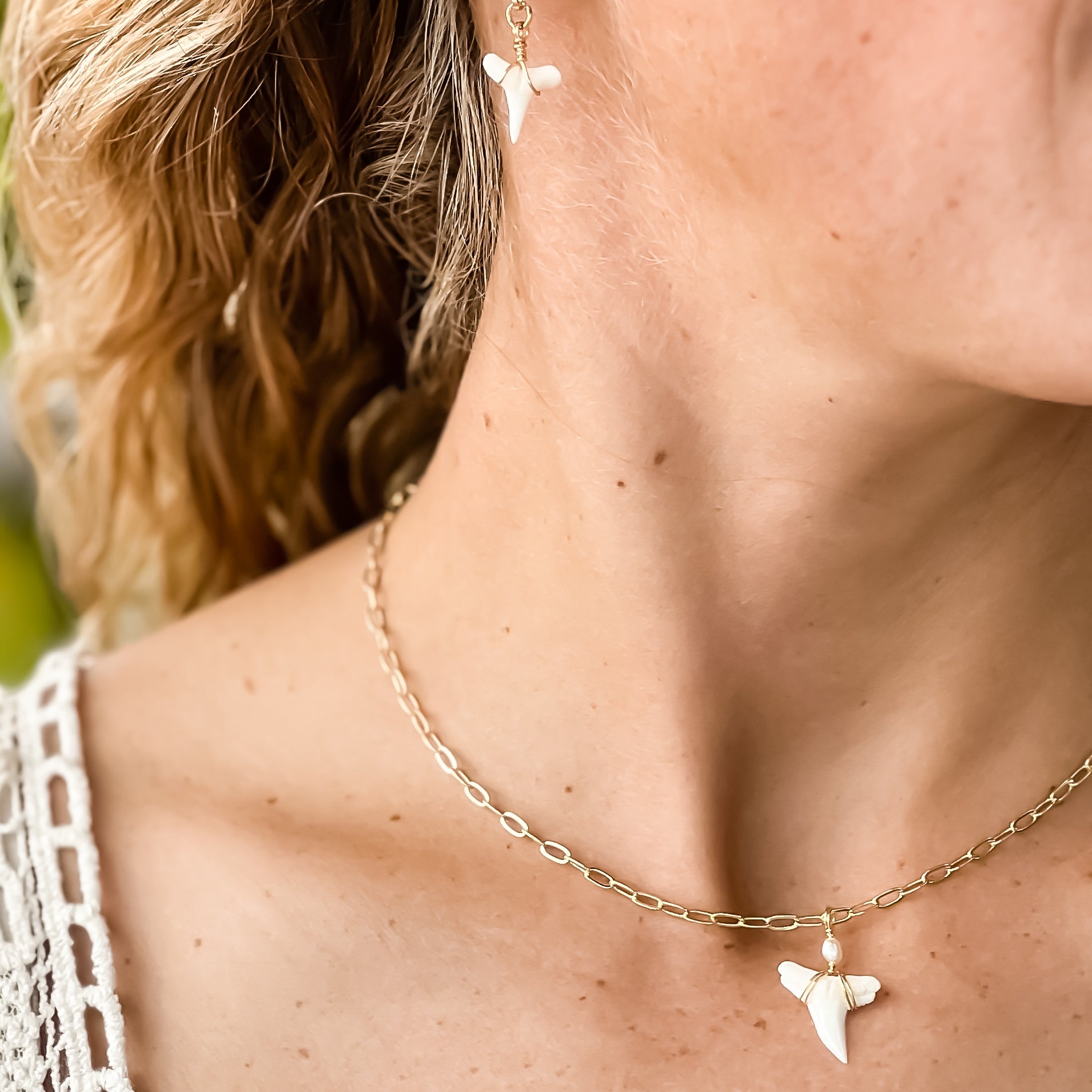 Care Tip: To keep your shark tooth earrings looking their best, avoid submerging in water and store in a safe place when not worn.